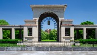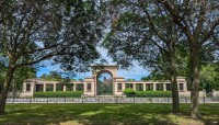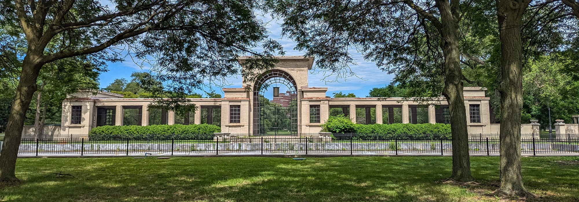 Designed by architect William Le Baron Jenney in 1871, two years after the creation of the West Park System, this 174-acre park—a Picturesque assemblage of lagoon, lawn, and trees—was originally named for Illinois senator Stephen A. Douglas. After opening in 1879 the park was sectioned by a diagonal, linear thoroughfare: Ogden Avenue. Six years later Oscar Dubuis prepared a new plan and by the turn of the century, park embellishments included a conservatory, ornamental gardens, and the city’s first public bathing facility, replete with a swimming pool, outdoor gym, and a no-longer extant natatorium.