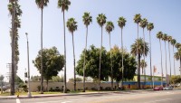 In 1970 the site served as the terminus of the National Chicano Moratorium March. The peaceful event, attended by 20,000 to 30,000 people, devolved into chaos as demonstrators and police clashed in the park and neighboring streets. Three died, including journalist Ruben Salazar, whom the park was renamed for in September 1970. Today, the park’s northern and eastern perimeters are edged with mature palm trees, established before 1948. The northern section features recreational amenities and structures established in the mid-twentieth century, including a trapezoidal swimming pool, basketball court, community center and gymnasium. The latter faces Whittier Boulevard and is fronted to the north by a narrow lawn. The structure’s western façade is painted with the mural, The Wall That Speaks, Sings, and Shouts (2001) by Paul Botello, honoring Ruben Salazar and Chicano culture.