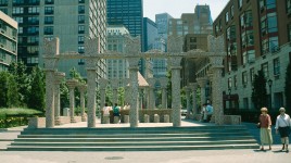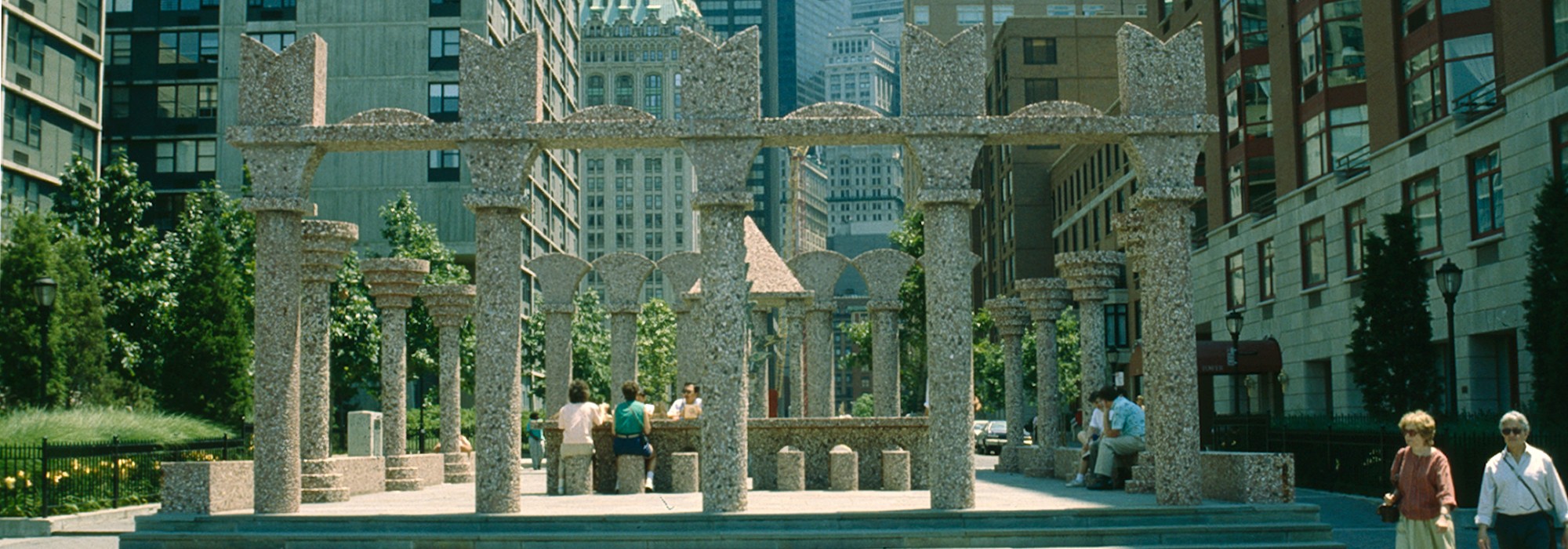 Burton’s began creating furniture-like sculptures in the early 1970s and by the 1980s he was focusing on public art commissions and larger sculptural arrangements. His first large public commission was for Rockdale Temple in Cincinnati, Ohio in 1980, in which he transformed a courtyard area into a meeting place with benches and a fountain reminiscent of an altar. More public commissions followed in both interior and exterior spaces incorporating landscapes and plant materials alongside his essential furniture forms. For many of these projects, Burton collaborated with landscape architects, such as Baltimore landscape architect James Reed Fulton at Pearlstone Park, and M. Paul Friedberg in his Battery Park City collaboration with Siah Armajani. Burton’s identity as an openly gay man informed his ideas of body language and public space, threads which run throughout his early writing and performance work, but came to full maturity in his sculpture. He died from AIDS related complications on December 29, 1989.