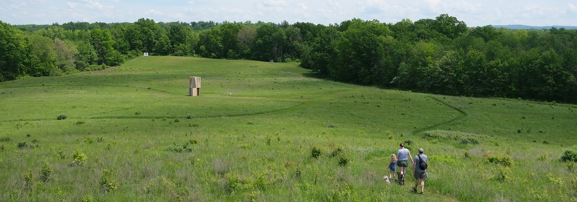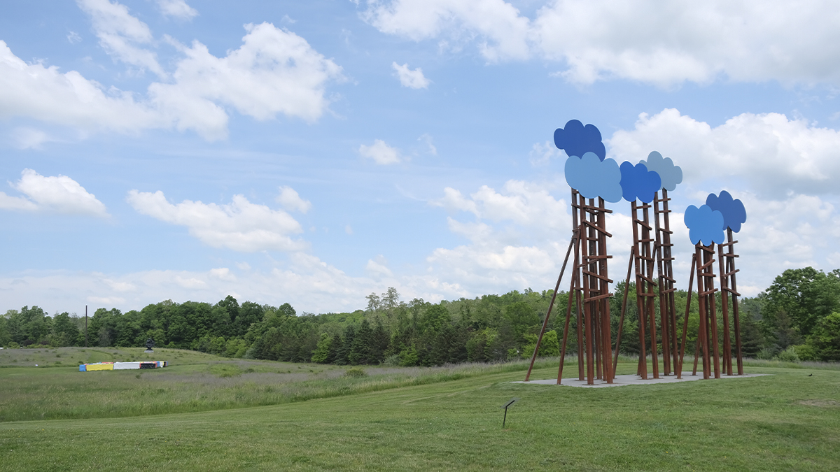 Situated in a hamlet of Columbia County along Route 22 is an expansive sculpture park set within 120 acres of rolling terrain. Loosely sectioned between large-scale sculpture and architectural folly—though the distinctions between these disciplines are intentionally blurred, the property is composed of a series of interconnected meadows, framed by second-growth woodlands. Situated along curving mown and earthen paths, the collection boasts more than 60 works, many of which invite interaction.