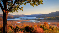 Atop a bluff, this cleared plateau of approximately 68 acres east of the Hudson River is surrounded by rolling woodland terrain. Its elevation affords borrowed views of Constitution Marsh and Island, the Hudson River, and the Hudson Highlands.