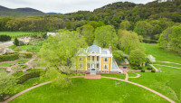 The Neoclassical mansion (1804–1808) was initially built fifteen miles north by States and Elizabeth Dyckman, wealthy American Loyalists. Acquired in 1923 by Westchester County Parks, the structure was neglected and, by 1941, threatened by demolition. In 1954 local citizens, supported by publisher and philanthropist Lila Acheson Wallace, purchased it. Two years later the group acquired sixteen acres in Garrison, subsequently disassembling and rebuilding the mansion at this new location. In 1959 landscape architect Richard Webel of Innocenti & Webel was commissioned to design the grounds, planting mature shrubs and flowering deciduous trees to create the effect of an established landscape.