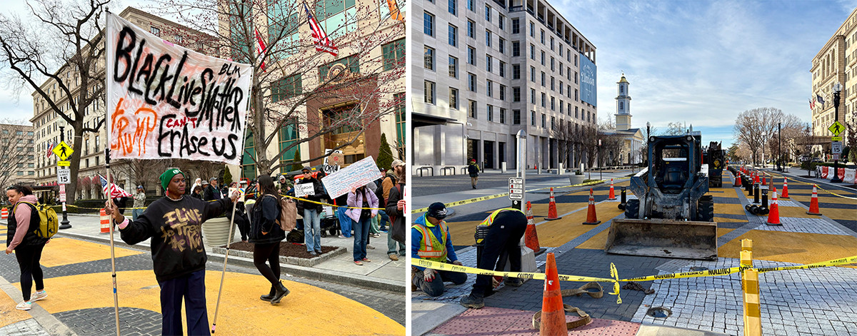 In early March 2025, following threats by President Trump and Congress of a federal take-over of the city and loss of federal funding, Mayor Bowser announced the plaza would be erased. On X she stated: “The mural inspired millions of people and helped our city through a painful period, but now we can’t afford to be distracted by meaningless congressional interference.” That “permanent installation” is now the subject of spatial nostalgia.