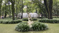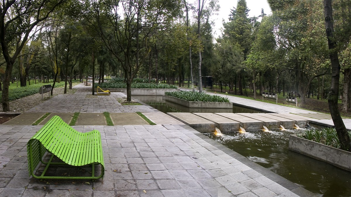 In 2006 Schjetnan designed a thirteen-acre botanical garden and a generous, pedestrian promenade that replaced a former road connecting the National Museum of Anthropology (1964) with the Tamayo Contemporary Art Museum (1981). Intended to lure visitors to underutilized sections of the park, an 820-foot-long Fountain Promenade, lined with mature juniper trees and organized around a traditional acequia (irrigation ditch). Projects undertaken by GDU (2003–2022) included the rehabilitation of park drives and Composers’ Walk, a grand pedestrian promenade.