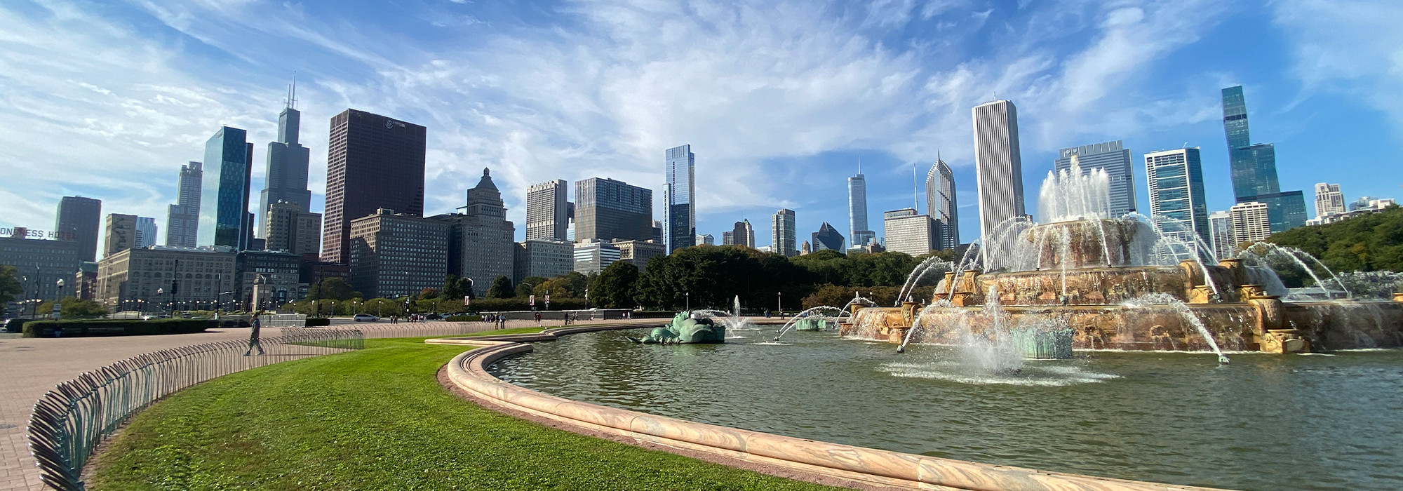 Initially founded in 1835, the park’s current design was created by architect Edward H. Bennett as part of Daniel H. Burnham and Bennett’s Plan of Chicago (1906–1909). The fountain and surrounding plaza were a collaborative effort between architects Bennett, Parsons & Frost, engineer Jacques H. Lambert, and sculptor Marcel Francois Loyau. Dedicated in 1927, the fountain was donated by philanthropist Kate Buckingham (1858–1937) in honor of her brother, Clarence F. Buckingham (1854–1913).