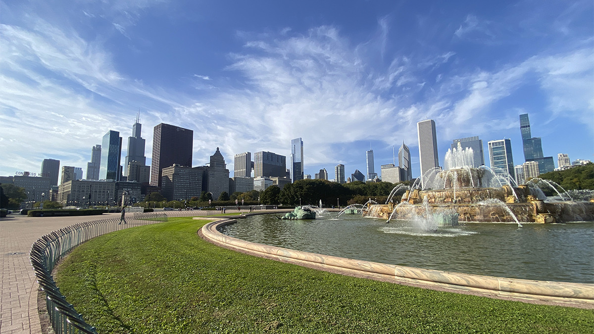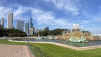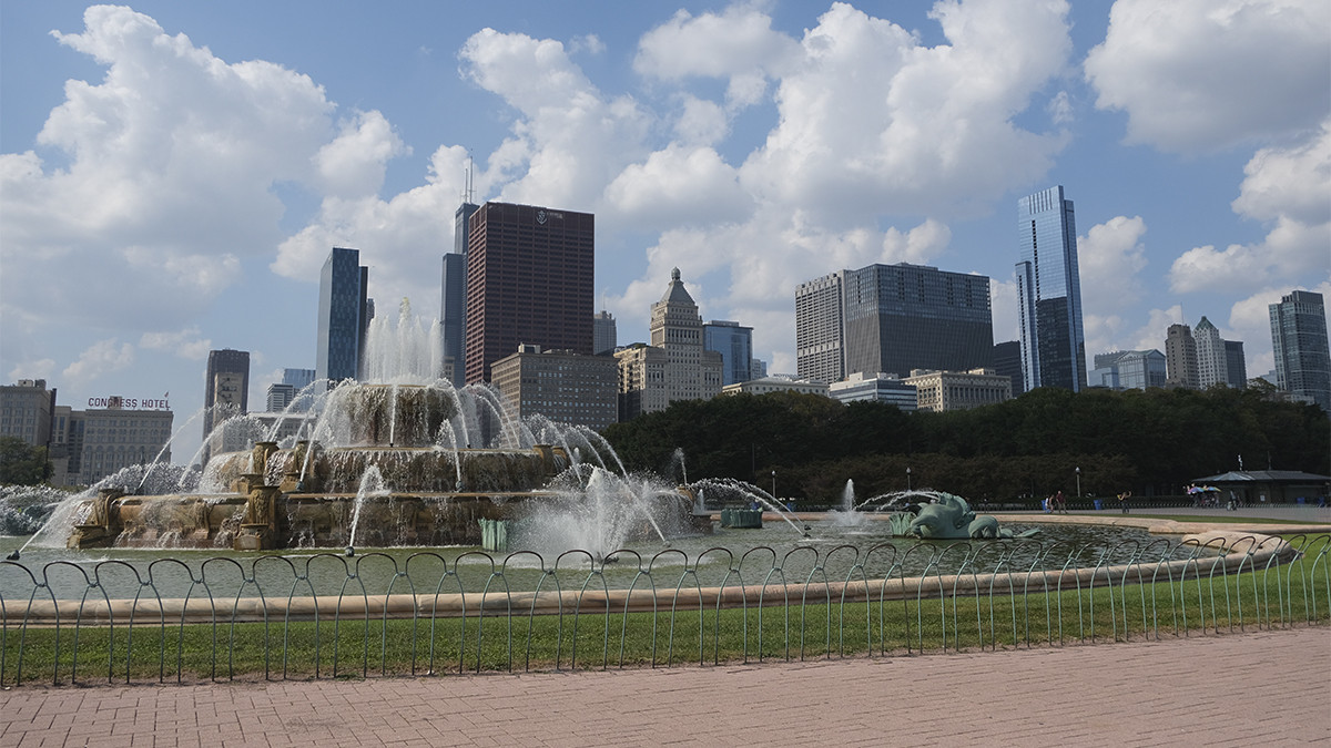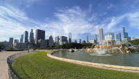 Serving as the gateway into the 319-acre Grant Park on the western shore of Lake Michigan, this rectangular plaza features parterre-style gardens and a central fountain. With four symmetrical points of access, the western entrance is level with South Columbus Drive, while the other three have wide staircases that lead either down to Lake Shore Drive (west) or to the park (north and south). The expanse of the plaza and its slight elevation provide panoramic views of Lake Michigan and the surrounding Chicago skyline.