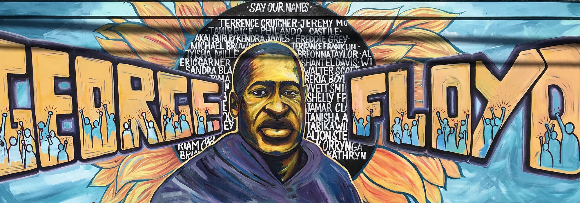 Centered at the intersection of Chicago Avenue and E. 38th Street approximately three miles south of downtown in the Powderhorn community, this site marks the location where George Floyd was murdered in May 2020. Following Floyd’s death, the barricaded intersection became the epicenter of national protests against police brutality, attracting throngs of demonstrators and mourners. The site features temporary memorials and artworks that honor Floyd and other African American victims of police brutality. Several works take advantage of streets, sidewalks, building facades and open spaces.