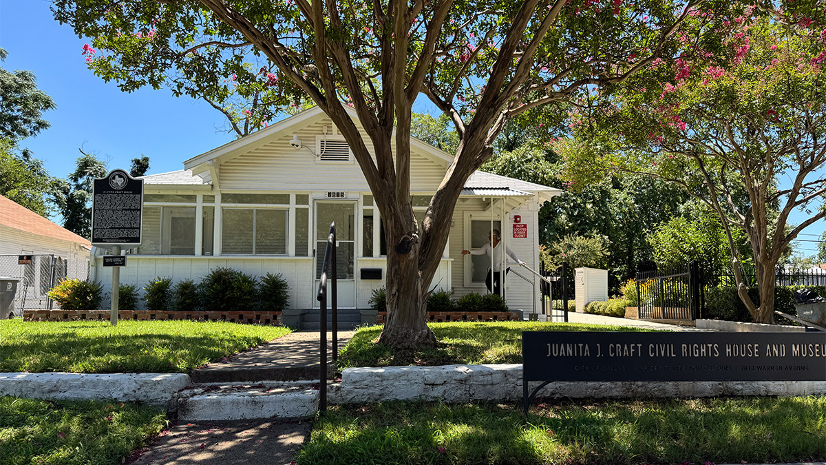 Located approximately two miles southeast of central Dallas, this modest, one-story bungalow built in 1924 was the home of civil-rights activist Juanita J. Craft (1902–1985). Establishing more than 180 branches of the National Association for the Advancement of Colored People (NAACP), she led efforts to desegregate multiple institutions across the state. The home, purchased in 1950, was the seat of her work, where she held NAACP meetings and hosted influential figures—including Martin Luther King, Jr.; Thurgood Marshall; and Presidents Lyndon B. Johnson and Jimmy Carter. Upon passing, Craft left her home to the City of Dallas, and following significant renovations, opened as a museum in 1994. During this time the city acquired an adjacent westward lot (1990) which was developed into a memorial garden (2004).
