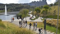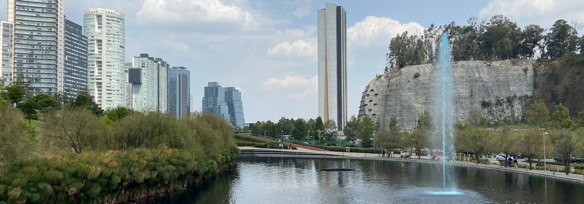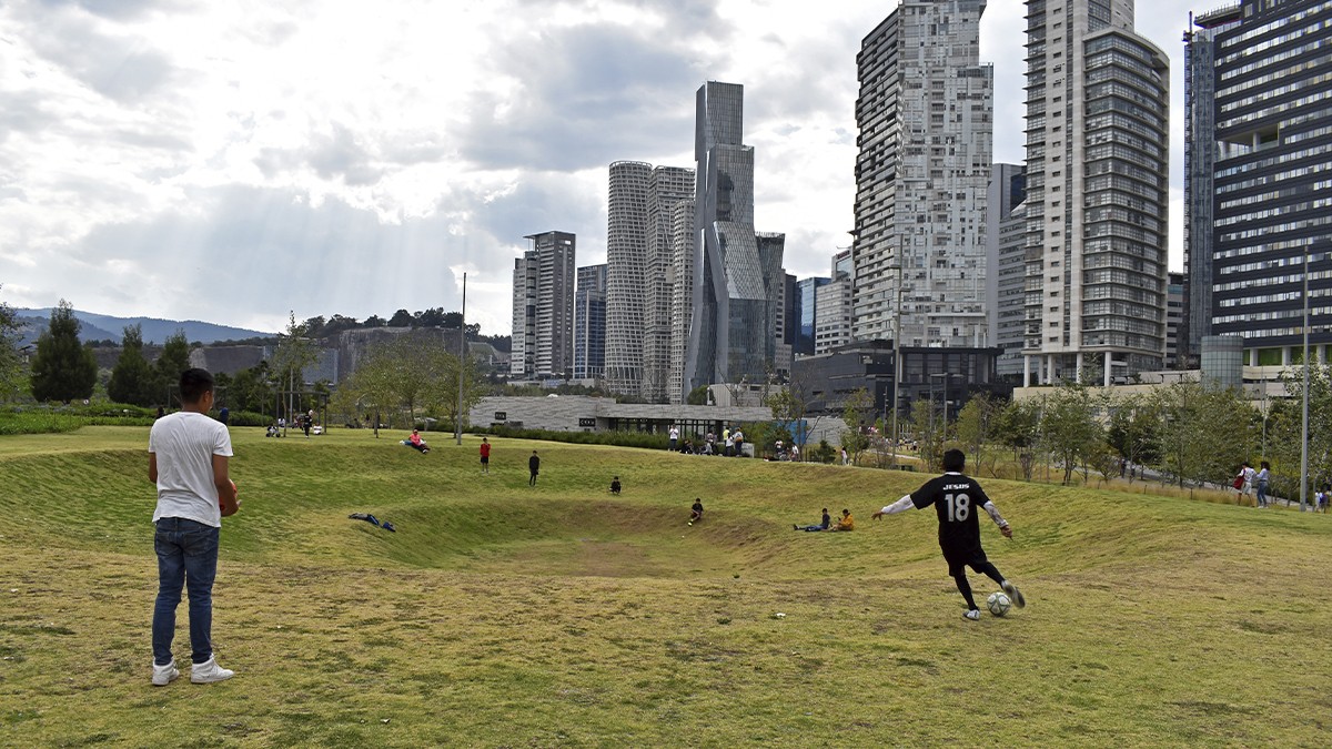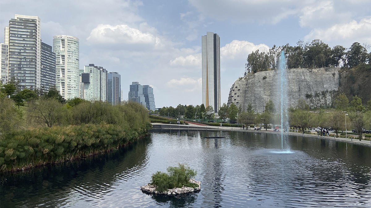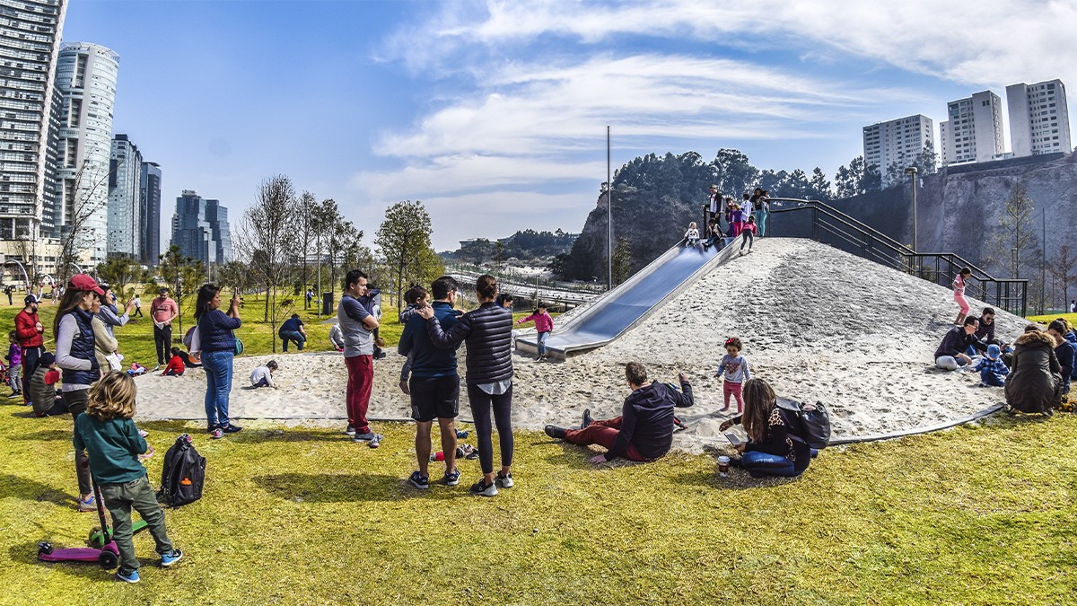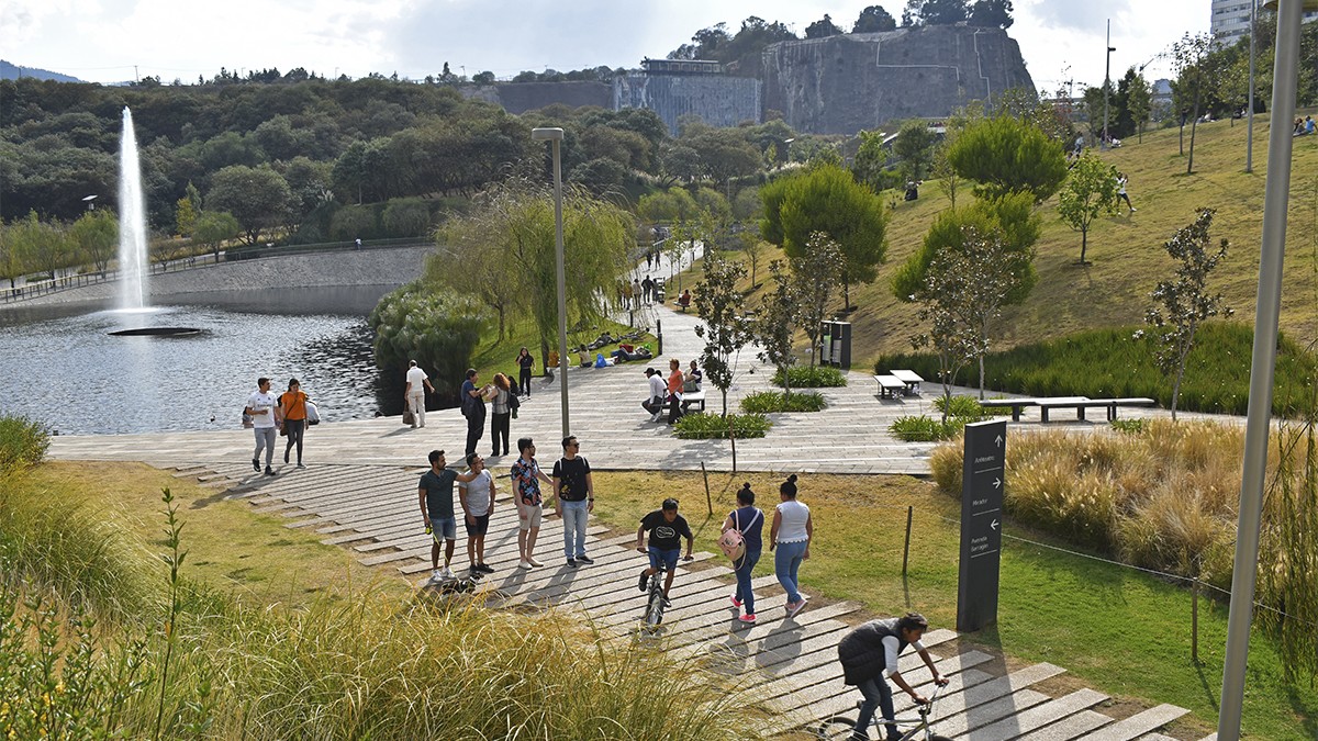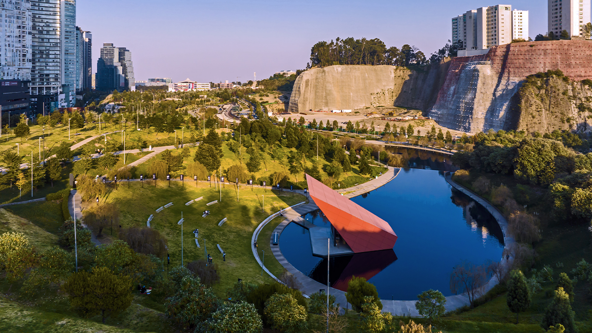 In the Santa Fe district twelve miles southwest of Mexico City, this former quarry was carved into the western hills of the Valley of Mexico. Initially established in the mid-1900s to extract sand, gravel, and sandstone, the quarry closed following the impacts of the earthquake of 1985. After years of debate between advocates and authorities, a developer was engaged to construct the 99-acre project with 70% dedicated to public parkland and 30% to housing, related infrastructure, and urban development. The parkland was developed first; designed by landscape architect Mario Schjetnan of Grupo de Diseño Urbano (GDU) with the architecture firm Víctor Márquez Arquitectos (VMA), it opened in 2017.