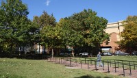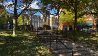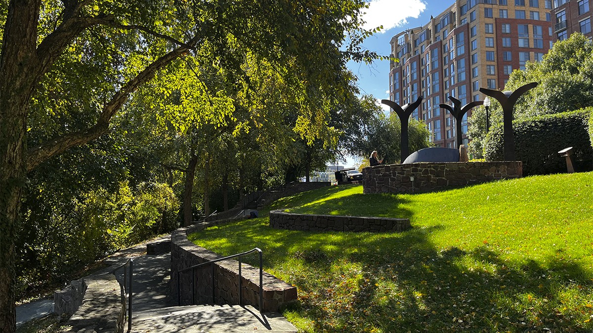 Nestled between Holland Lane and Hoof’s Run, this narrow, nine-acre park honors the contributions of the city’s African American citizens. Offering borrowed eastern views of Alexandria National Cemetery and the Presbyterian Cemetery, the site incorporates a one-acre burial ground—the Black Baptist Cemetery—established in 1885 by the Silver Leaf (Colored) Society. Neglected over time, the cemetery was used as municipal landfill beginning in the early 1960s. Following the discovery of more than 25 internments (1985–1992), the Norfolk Southern Corporation presented the land in 1995 to the city, which then engaged the landscape architecture and planning firm EDAW (now AECOM), to transform the site and its contiguous acreage into a commemorative landscape and satellite of the Alexandria Black History Museum.