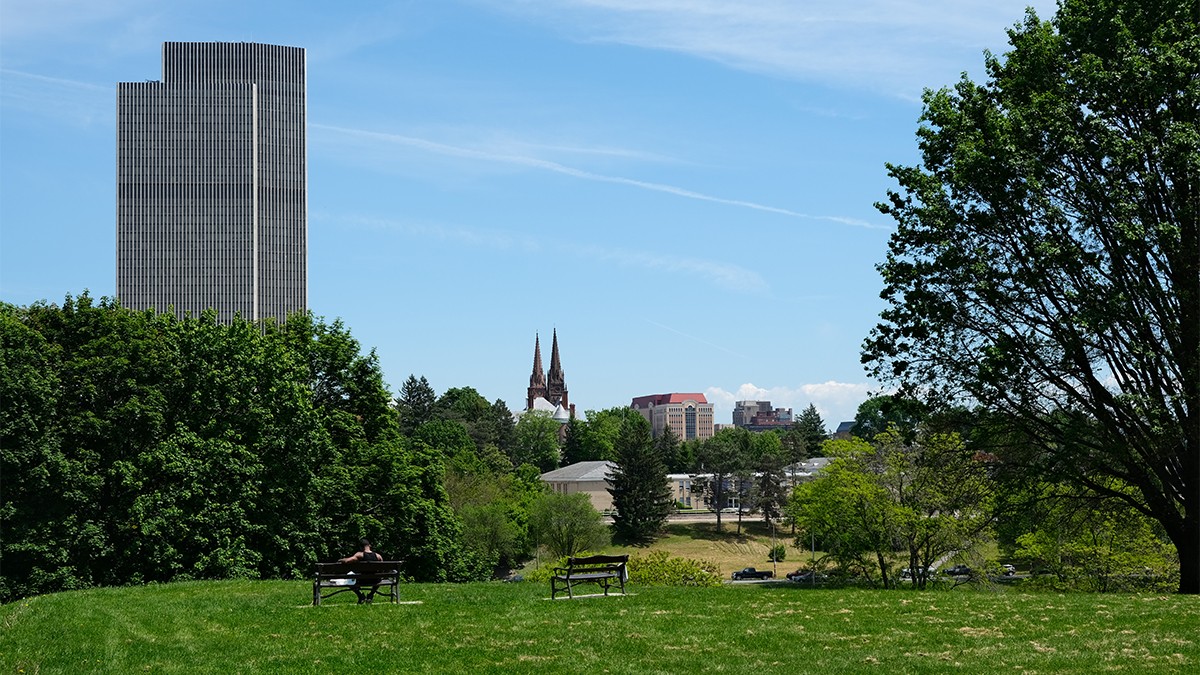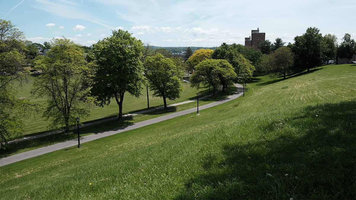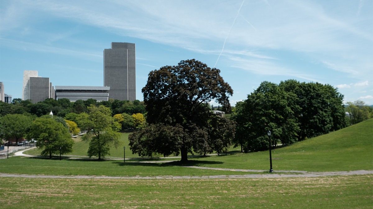 This irregularly shaped 67.2-acre park is located just southwest of Empire Plaza and the New York State Museum, approximately one-quarter mile west of the Hudson River. Framed by streets and traversed by curvilinear drives, the topographically varied park features a ravine formed by the Beaver Kill Creek, and a broad hill that affords sweeping downtown views.
