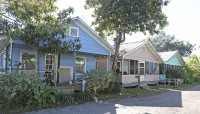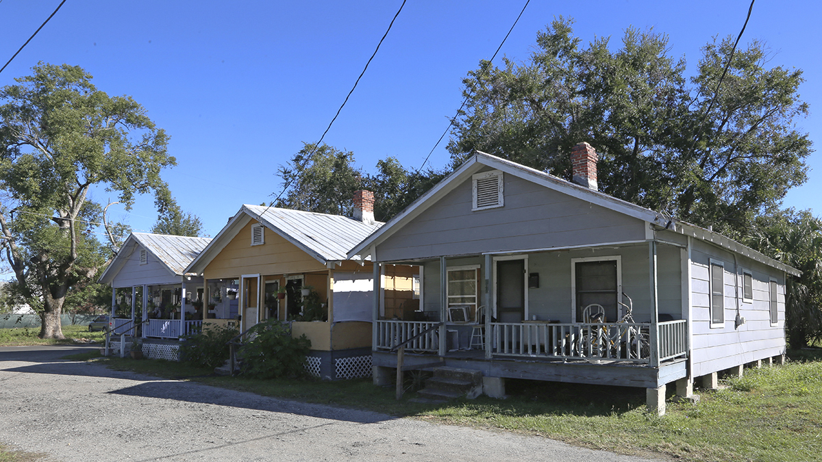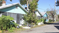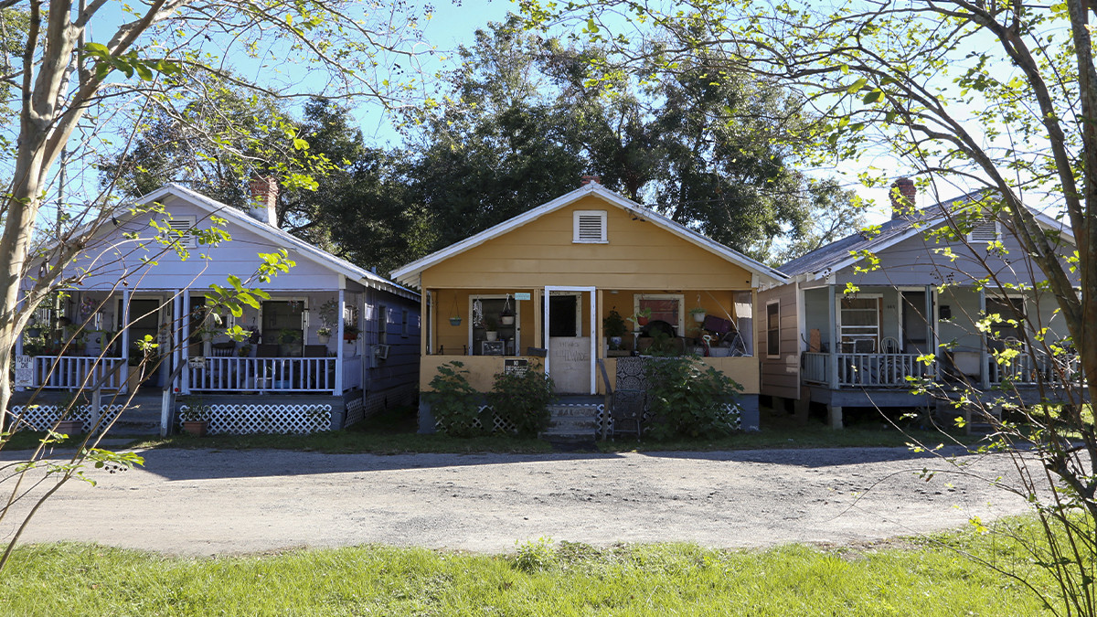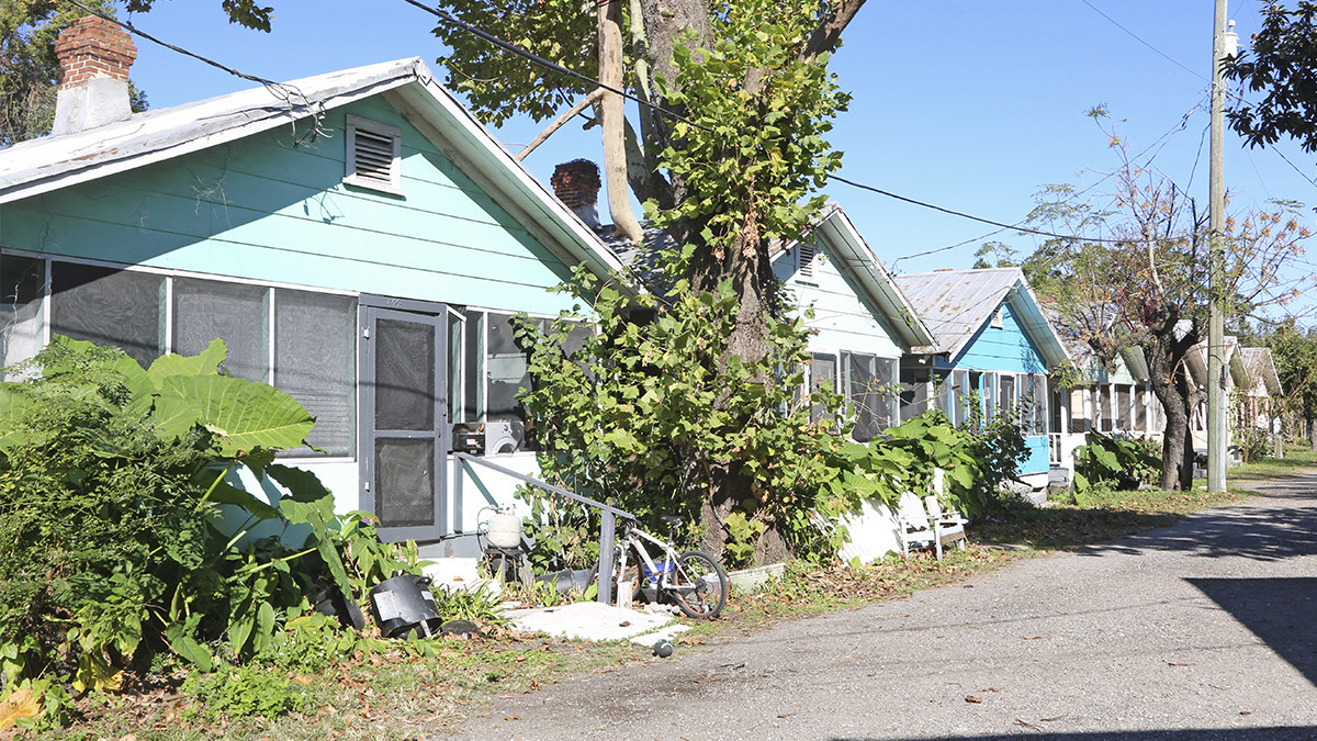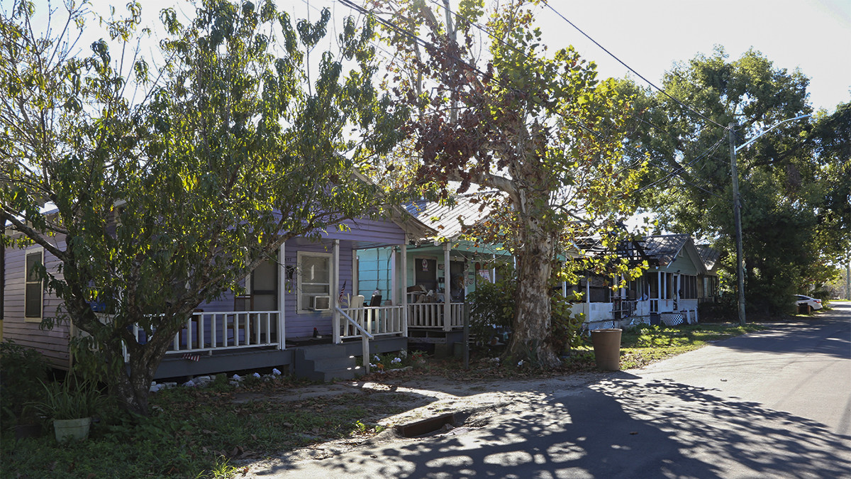 Encouraged by the open front porches and proximity of the homes, the bungalow court became a thriving community for African Americans, many of whom were Gullah Geechee, into the mid-twentieth century. Residents operated businesses out of their homes and hosted communal crab boils and fish fries along Wade Drive. In the 1950s and 1960s the construction of Interstates 10 and 95 razed much of the surrounding neighborhoods, and environmental pollution from a nearby incinerator and abattoir led to the court’s decline. Additionally, five bungalows were destroyed by fire—two in 1951 and three in 2001.