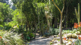 Stevens’ projects synthesized International and Californian design ideals, integrating formal ideas gleaned from the Mediterranean, Islamic, Spanish Colonial Revival and Hawaiian traditions with a more laid-back California style. He was known for his planting plans, which often included large massings and elaborate plant palettes featuring tropical plants. Notable projects include the Peabody estate; the 1949-50 Master Plan for the University of California at Santa Barbara; Casa del Herrero; the Santa Barbara Biltmore Hotel; the Royal Hawaiian hotel; Franceschi Park; Lotusland; and the Tremaine House, designed by Richard Neutra. His work, which spanned the Picturesque, American Country Place and Modernist eras, was showcased in numerous publications, including the book Modern Gardens and the Landscape (1964). Santa Barbara’s Stevens Park is named in his honor.