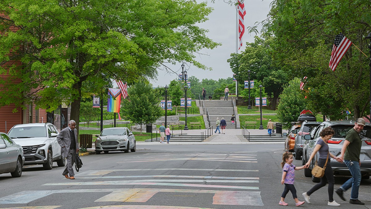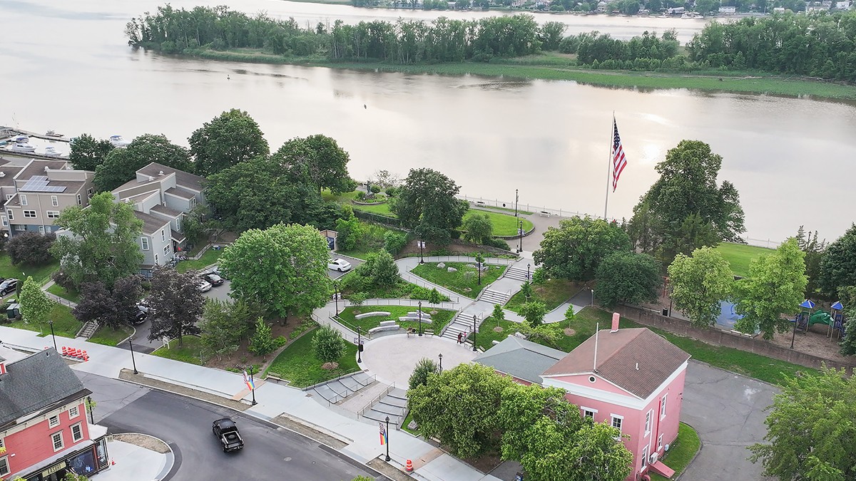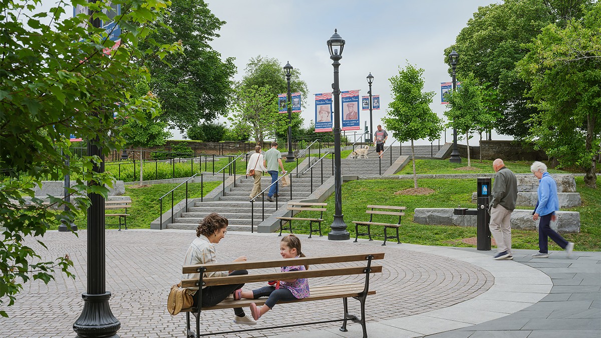 Established in 1795 by the town’s Common Council, this approximately one-acre, T-shaped park is located along Front Street at the terminating axis of Warren Street. The park is characterized by a linear promenade set upon a steep bluff that affords sweeping, borrowed views of the Hudson River and the Catskill Mountains.