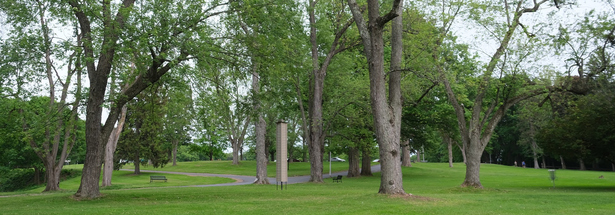 This 80-acre park is situated 1.5 miles east of the Hudson River atop Mount Ida and borders the Poestenkill Gorge to the south. Surrounded to the west, north, and east by residential communities, its dramatic topography and dense canopy of mature deciduous tree plantings (including European beech, catalpa, magnolias, oaks, and sycamore) can be experienced via a network of curvilinear roads that connect to recreation facilities and a Modernist comfort station. Visitors access the park through the gated Congress Street entrance where the park’s primary route, Prospect Park Road, originates. The network of drives and paths terminate at the park’s 285-foot summit, where trees have been managed to safeguard western and southern views of the Hudson River Valley.