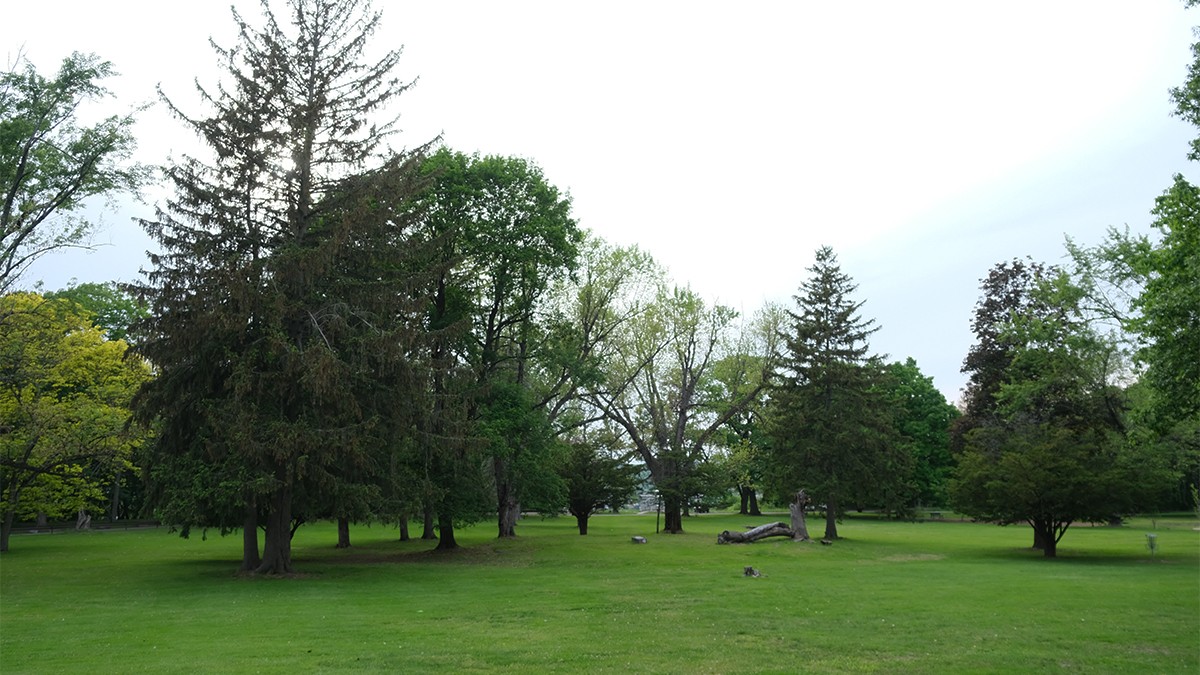 In the nineteenth century this plot hosted the Vail and Warren estates, which the city acquired by 1903. Approximately 500 trees and stumps were cleared, and the city engaged Garnet Douglass Baltimore as landscape engineer to design a public park. The decision to retain Baltimore, among the first African American graduates from the nearby Rensselaer Polytechnic Institute, came amidst efforts to establish a broader park system in Troy. Baltimore’s contributions include a fountain and naturalistic water feature, a play area, tennis courts, and two rustic pavilions. With local architect H.P. Fielding, Baltimore converted the preexisting residences into a museum and casino (both destroyed in the mid-twentieth century). An aboveground swimming pool designed by engineer Wesley Bintz was installed in 1926; though closed in the 1990s, it is one of the few extant pools designed by Bintz.