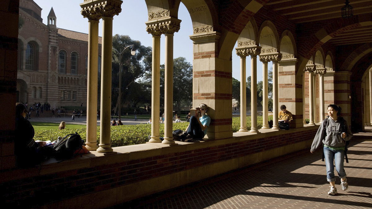Established in 1919, the Southern Branch of the University of California was developed from the State Normal School. The campus expanded to a new rural, 200-acre tract in Westwood Hills in 1924, with ocean views and the verdant backdrop of the Bel Air hills. In 1926, architect George Kelham developed a Beaux Arts campus master plan, with four red brick Romanesque buildings set in a cross axial arrangement. Kelham worked with the site's hilly, irregular terrain by using terraces and steps on the west side of the hill and creating a Romanesque-style bridge over an arroyo to the east, which constituted the main entry axis. Landscape architect John Gregg designed a corresponding Mediterranean campus landscape through the 1930s, which was continued by Ralph Cornell after 1937. In 1947 the arroyo was filled and the bridge buried to create Dickinson Court and Plaza.