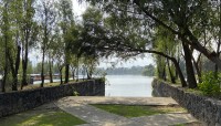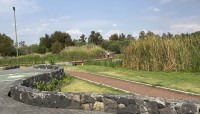 Named for the Nahuatl word meaning “the place where the flowers are grown,” this 684-acre park, approximately fifteen miles south of Mexico City, is nestled within a 7413-acre cultural landscape distinguished by lagoons and chinampas—an ancient agricultural system of floating, artificial islands. In the late 1980s the city undertook a large-scale rehabilitation of the lake zone, engaging landscape architect Mario Schjetnan and his firm, Grupo de Diseño Urbano (GDU), to design Xochimilco Ecological Park (Parque Ecológico de Xochimilco). Built between 1990–1993 the park is divided into two sections by the Anillo Periférico highway.